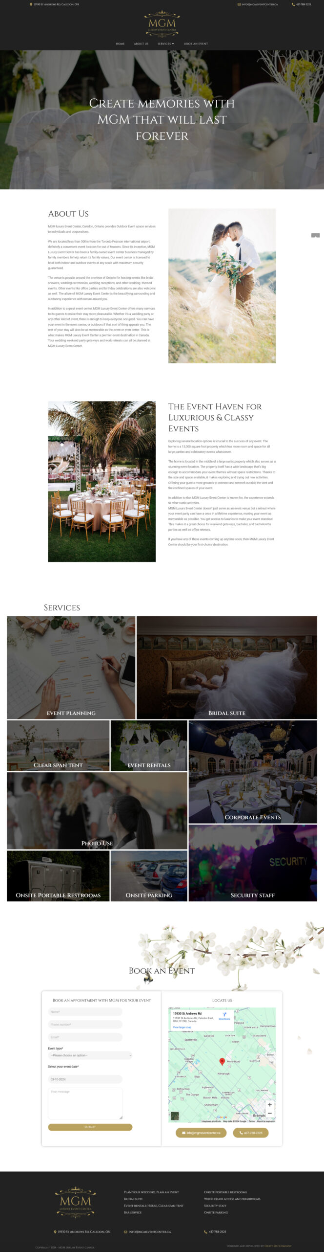 MGM luxury Event Center, Caledon, Ontario provides Outdoor Event space services to individuals and corporations.